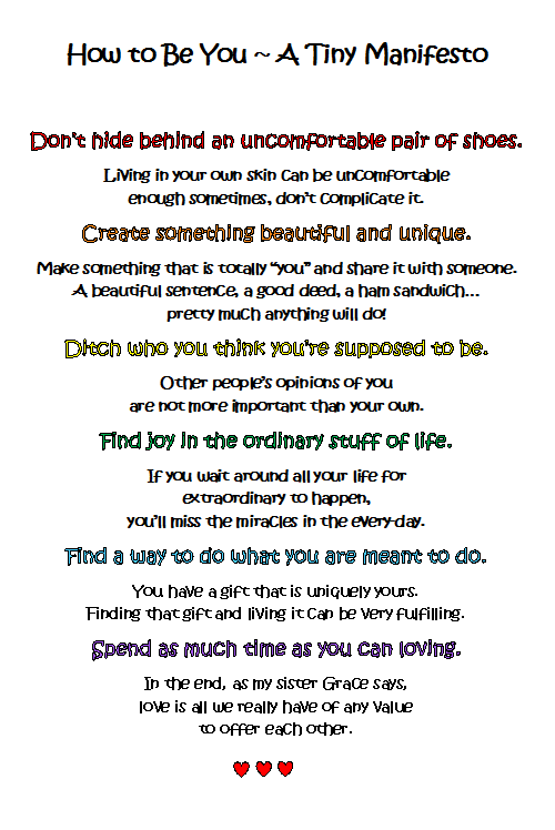 I’m working on updating and growing my website. One of the tasks on the list from a course I took a couple years ago is to write a manifesto.