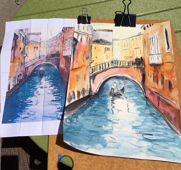 Then I got a picture from my brother Paul. He wrote, “Carol, This is my attempt to copy a watercolor of a Venice scene that I really liked (artist unknown).” I had no idea he liked to paint!